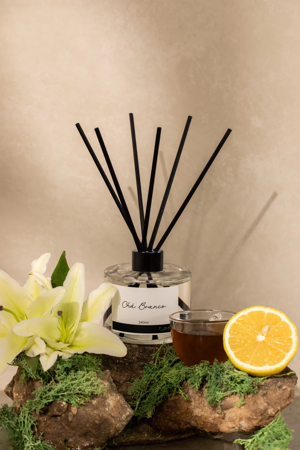 Refrescante e delicado, o aroma Chá Branco combina a vivacidade do limão siciliano, lima e lavanda com o frescor floral de lírio do campo, violeta e manjericão. O fundo de musk e vetiver adiciona sofisticação e conforto, criando uma fragrância leve, elegante e envolvente para qualquer ambiente.